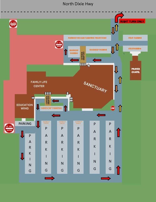 Construction on The Hub is moving forward! Beginning February 9th, we will have a new parking patterns during our services. Please see the map below to prepare for this change.